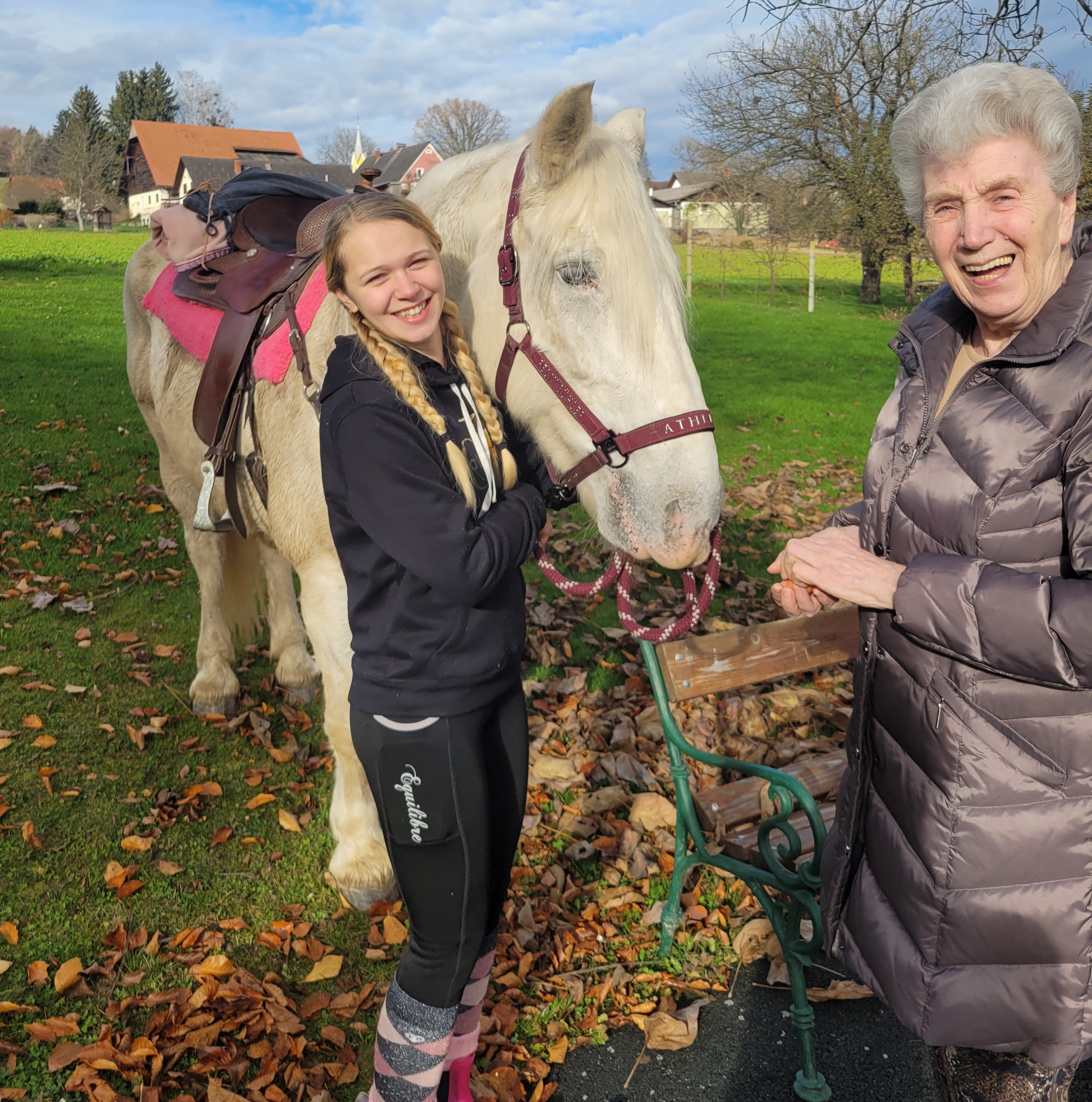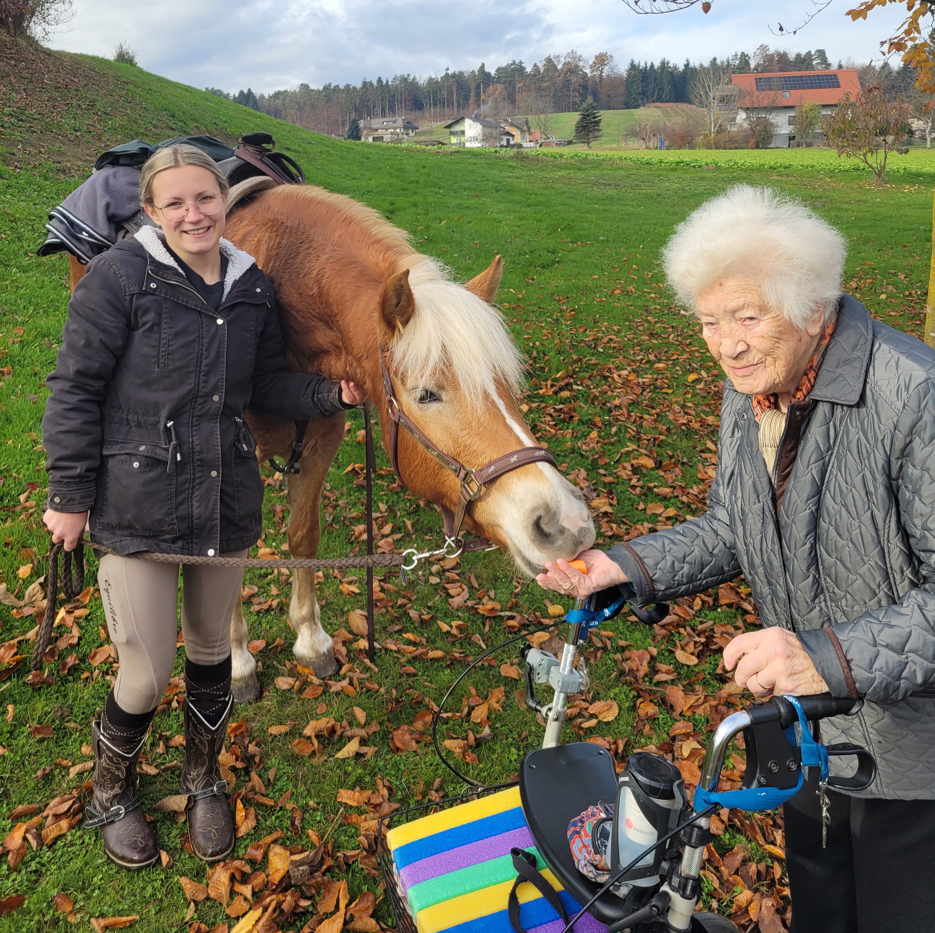 Im SeneCura Sozialzentrum gab es vor kurzem einen außergewöhnlichen Besuch, der bei den Bewohner:innen für große Freude sorgte. Die Pflegeassistentin Theresa Schmuck und die Köchin Anika Schwaiger kamen mit ihren Pferden zu Besuch – ein Ereignis, das nicht nur die Bewohner:innen, sondern auch die Tiere begeisterte, die mit schmackhaftem Futter und herzlicher Pflege von den Senior:innen verwöhnt wurden.
