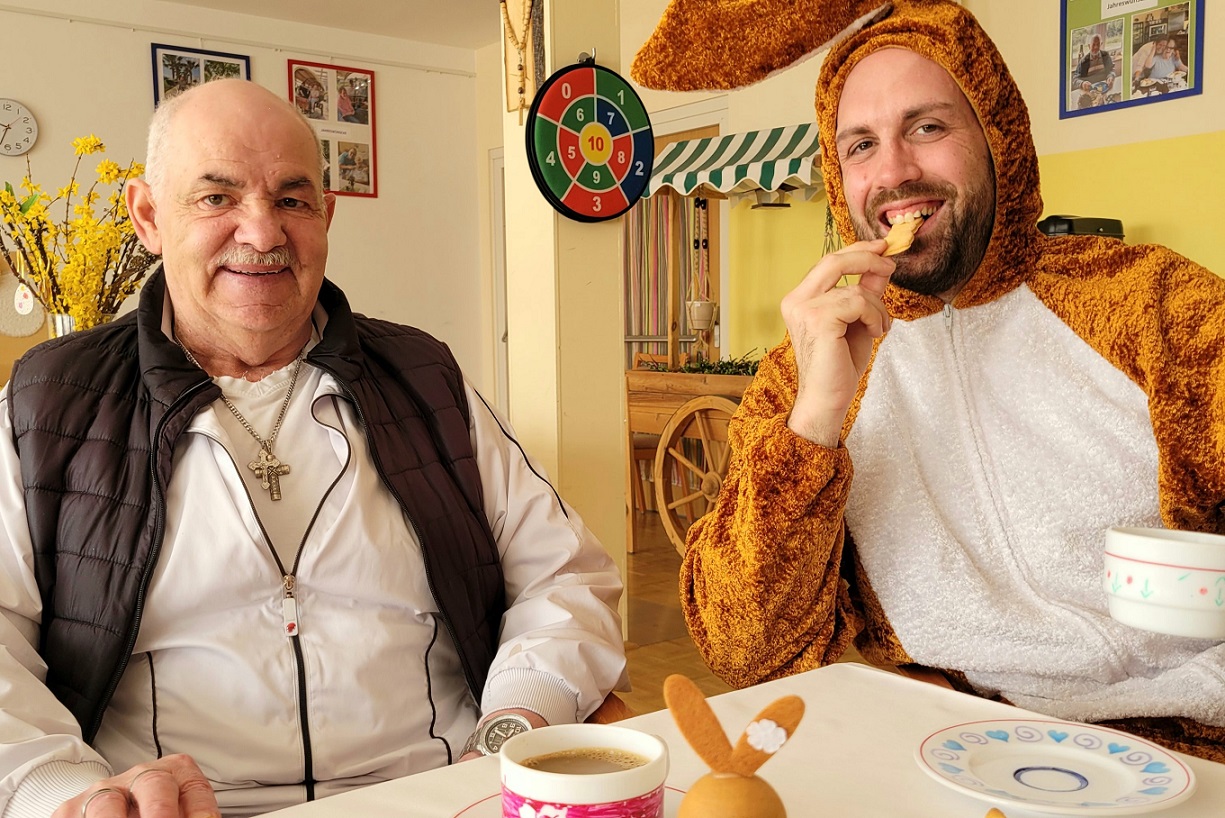 Ein Höhepunkt des Basars war zweifellos das Erscheinen der beiden Osterhasen, Konstantin Leitinger und Matfhias Prutti, die mit ihrem charmanten Auftreten und fröhlichen Wesen Gäste jeden Alters zum Strahlen brachten. Sie verteilten nicht nur Süßigkeiten, sondern auch eine gehörige Portion gute Laune. Inmitten der festlichen Stimmung genossen sowohl Bewohner:innen, Angehörige als auch Anrainer:innen des Hauses beim gemütlichen Beisammensein mit Kaffee und Plaudereien die liebevoll gebackenen Naschereien. „Der Osterbasar halt mittlerweile langjährige Tradition und wird von unseren Bewohner:innen schon Wochen im Voraus freudig erwartet. Es ist schön zu sehen, wie die Bewohner:innen, unser Team und die ganze Nachbarschaft zusammenkommen, um diese besondere Zeit des Jahres zu feiern“, meint Robert Feiertag, Hausleiter des SeneCura Sozialzentrums Pölfing-Brunn.
