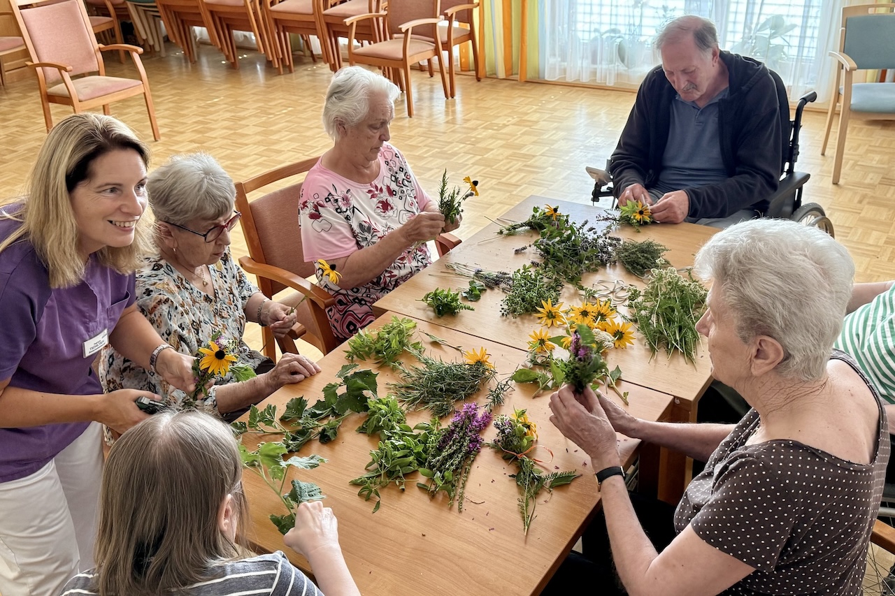 Schon beim Sammeln und Binden war die Vorfreude groß: Verschiedene Kräuter wie Minze, Kamille, Lavendel oder Salbei wurden gemeinsam mit dem Betreuungsteam des SeneCura Sozialzentrums Pölfing-Brunn ausgewählt und mit viel Fingerspitzengefühl zu individuellen Sträußen gebunden. Der Duft der frischen Kräuter erfüllte den Raum – und mit ihm kamen Erinnerungen an vergangene Jahre auf. „Früher habe ich mit meiner Mutter immer selbst Kräuter gesammelt und getrocknet. Dass ich das jetzt wieder machen kann, hat mich mit großer Freude erfüllt“, erzählte Bewohner Johann Siedl mit einem Lächeln. Neben dem kreativen Tun waren auch die gemeinsamen Momente wertvoll: Es wurde geplaudert, gelacht und erzählt – so wurde der Nachmittag zu einem stimmungsvollen Erlebnis für alle Sinne.